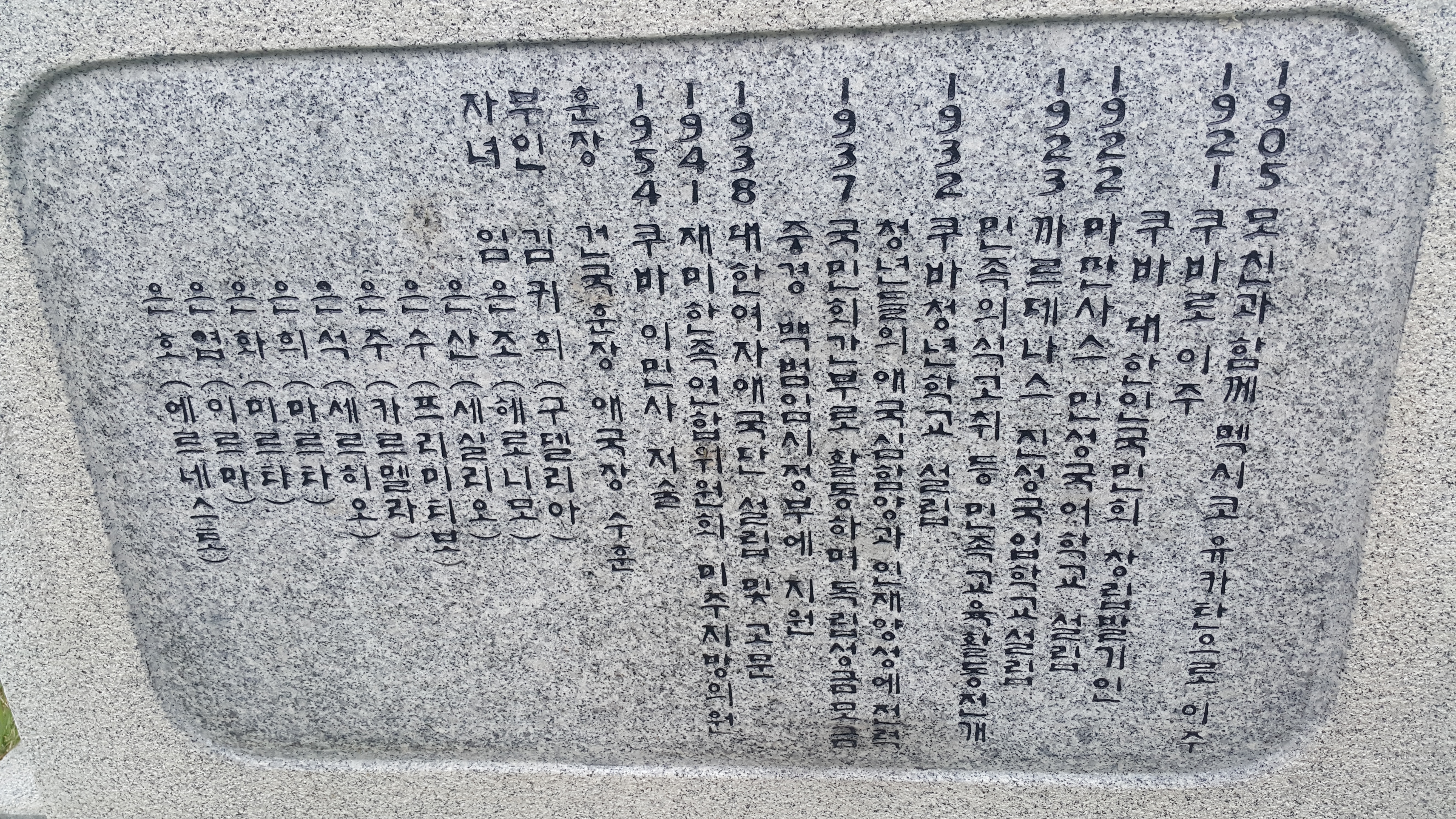 아버지는 3세 때 어머니 손을 잡고 멕시코로 옮겨왔다. 돈을 많이 벌 수 있다는 말에 속아 제물포에서 배에 오른 1031명 중 한 명이었다. 1905년부터 유카탄반도의 에네켄 농장에서 잔뼈가 굵었다. 4년 계약기간이 끝날 무렵 조국은 일제 치하가 됐다. 멕시코에 눌러앉았다. 세계 1차대전이 끝나자 국제 설탕값이 급등했다. 사탕수수밭에서 더 나은 생활을 꿈꾼 한인 288명이 쿠바 동북단 마나티항에 도착한 것은 1921년 3월이었다. 이번에도 더 나은 삶에 대한 희망은 깨졌다. 설탕값이 폭락하면서 일자리가 사라졌기 때문이다. 마나티에는 모기가 들끓고 마실 물도 충분치 않았다. 한인들은 결국 에네켄 농장으로 돌아갔다. 아바나와 인근 마탄사스, 중서부 카르데나스 등지로 흩어졌다. 쿠바인들은 눈이 찢어진 동양인들을 통칭해서 “치노(Chino·중국인)”라고 불렀다. 한인들은 그때마다 “코레아노(Coreano·한국인)”라고 정정케 했다. 마나티에 도착한 지 3달 만에 북미 국민회 쿠바 지방회를 설립했다. 1922년 마탄사스에 민성(民成)학교를, 이듬해 카르데나스에 진성(進成)학교를 세워 한글 교육에 나섰다. 김세원, 박창운, 호근덕, 이승준, 이세창 등 많은 분들이 한인사회 지도자로 활약했다.
