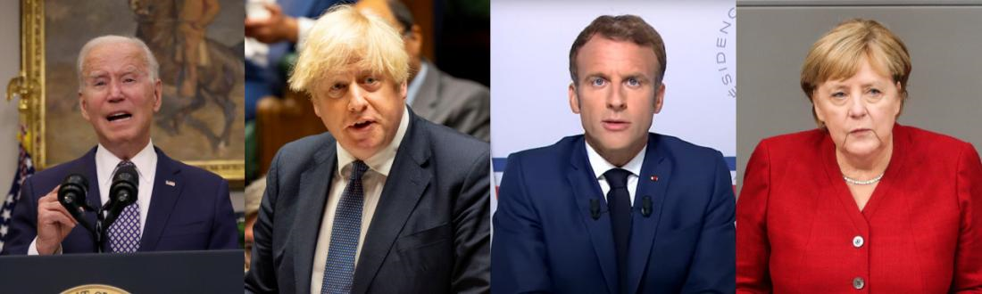 보리스 존슨 영국 총리는 지난 18일 대의회 연설을, 에마뉘엘 마크롱 프랑스 대통령은 16일 방문 중이던 브장송에서 대국민 특별연설을 내놓았다. 바이든의 회견문안에 담겼던 요소들이 포함됐다. 영국군 역시 한국군 오쉬노부대가 철수한 2014년, 북대서양조약기구(나토) 동맹국들과 함께 전투임무를 종료했다. 존슨 총리는 9·11테러에서 영국인 67명이 숨졌음을 상기시키면서 나토조약 5조(공동방위)에 따라 참전했음을 강조했다. 최근 영국인 306명과 아프간인 2052명을 탈출시키는 데 들어간 예산을 보고하고 추가 구출 계획을 밝혔다.