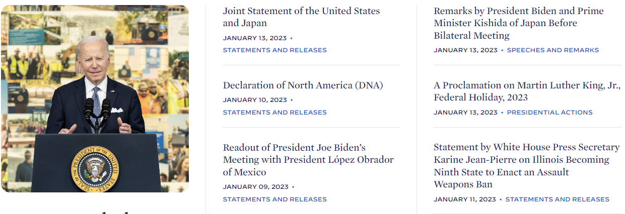 With an unbreakable bilateral relationship as our foundation, we will also collaborate with others, in the region and beyond, for the benefit of the Indo-Pacific and the world. Together with Australia and India, we will ensure the Quad continues to be a force for good, committed to bringing tangible benefits to the region, including by delivering results on global health, cybersecurity, climate, critical and emerging technologies, and maritime domain awareness. We will continue supporting ASEAN centrality and unity as well as the ASEAN Outlook on the Indo-Pacific. We commit to strengthening vital trilateral cooperation among Japan, the Republic of Korea, and the United States, in security and other domains. And we will bolster our growing collaboration in the Pacific Islands, including through the Partners in the Blue Pacific. President Biden congratulated Japan on the start of its two-year term on the UN Security Council and on its presidency for the month of January. We begin 2023 together as the closest of allies and friends, newly committed to achieving peace and prosperity, not only through our words but through our actions. The times demand no less.