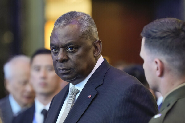 로이드 오스틴 미국 국방장관이 지난 2일 싱가포르 샹그릴라 안보대화 개막 만찬에 참석하기 위해 행사장에 들어서고 있다. 2023.6.2. AP 연합뉴스