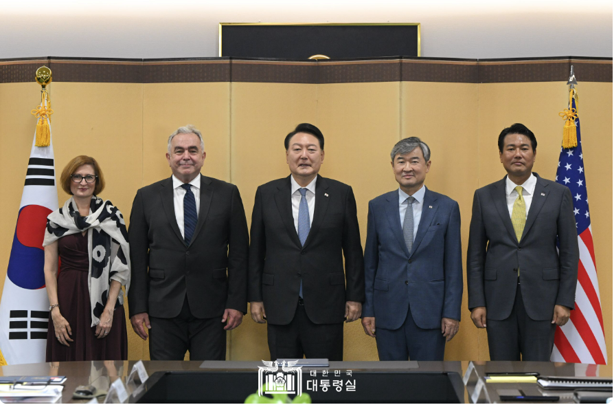 윤석열 대통령은 오늘(7. 18, 화) 오전 용산 대통령실에서 진행된 한·미 핵협의그룹(NCG) 출범 회의장을 방문해 한·미 양측 대표단을 격려했습니다.