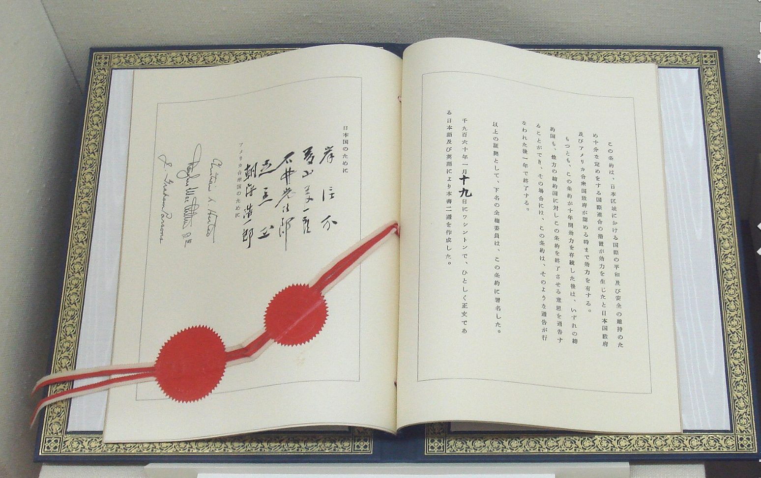 The current treaty, which took effect on June 23, 1960, revised and replaced an earlier version of the treaty, which had been signed in 1951 in conjunction with the signing of the San Francisco Peace Treaty that terminated World War II in Asia as well as the U.S.-led Occupation of Japan (1945–1952). The revision of the treaty in 1960 was a highly contentious process in Japan, and widespread opposition to its passage led to the massive Anpo protests, which were the largest popular protests in Japan's history.