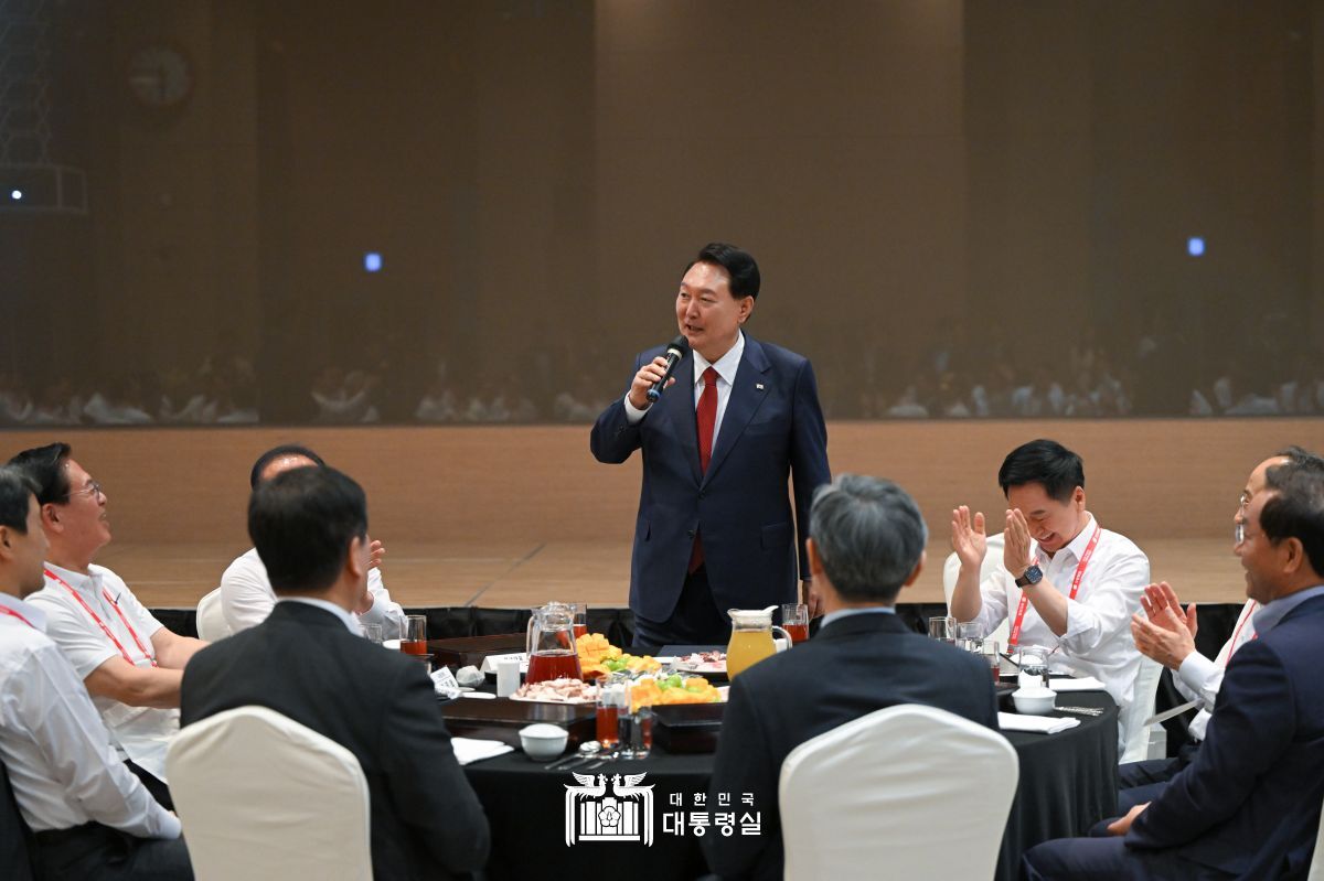 오늘 의원님들 연찬회에 국무위원들도 다 자리하고, 또 대통령실의 수석 이상들도 다 참석해서 사실 여러분하고 이렇게 하룻밤 같이 잠도 자고 밤늦게까지 얘기도 하고 이렇게 하면 좋은데, 또 아무래도 우리가 국민들 다 보시는데 소주 한잔 하기도 좀 여러 가지 어려운 여건 하에서 그러기도 어렵고, 우리가 같이 하는 시간을 귀중하게 효과적으로 잘 활용해서 우리 당정, 또 내각이 함께 가야 될 노선과 방향을 잘 잡아 가지고 우리가 올해 정기국회도 잘 치러 내고, 그리고 결국 국민들이 다 보고 있지 않겠습니까. 우리가 갈 방향은 결국은 국민을 위하는 것인데, 그건 너무 막연합니다. 저는 우리가 개인주의, 개인의 자유와 권리, 자유민주주의, 시장경제, 그리고 우리 글로벌 중추 국가, 또 우리가 지금 만들어야 될 다양한 법제와 방향은 글로벌 스탠더드에 부합하지 않으면 우리 기업과 국민이 해외 시장을 개척하기 어렵습니다. 결국 우리의 민생과 경제를 살찌우는 것은 우리가 참여해야 될 시장을 키우는 것이고, 또 넓은 시장에 우리가 뛰어들어가서 차지해야 된다는 것입니다. 그래서 우리가 다 함께 그런 일을 하기 위해서는 우리의 모든 제도와 법제를 글로벌 스탠더드에 맞추고, 거기하고 부합하지 않는 것은 우리가 과감하게 폐기하고, 또 그것을 국민들에게 자신있게 설득할 수 있어야 된다고 생각합니다.