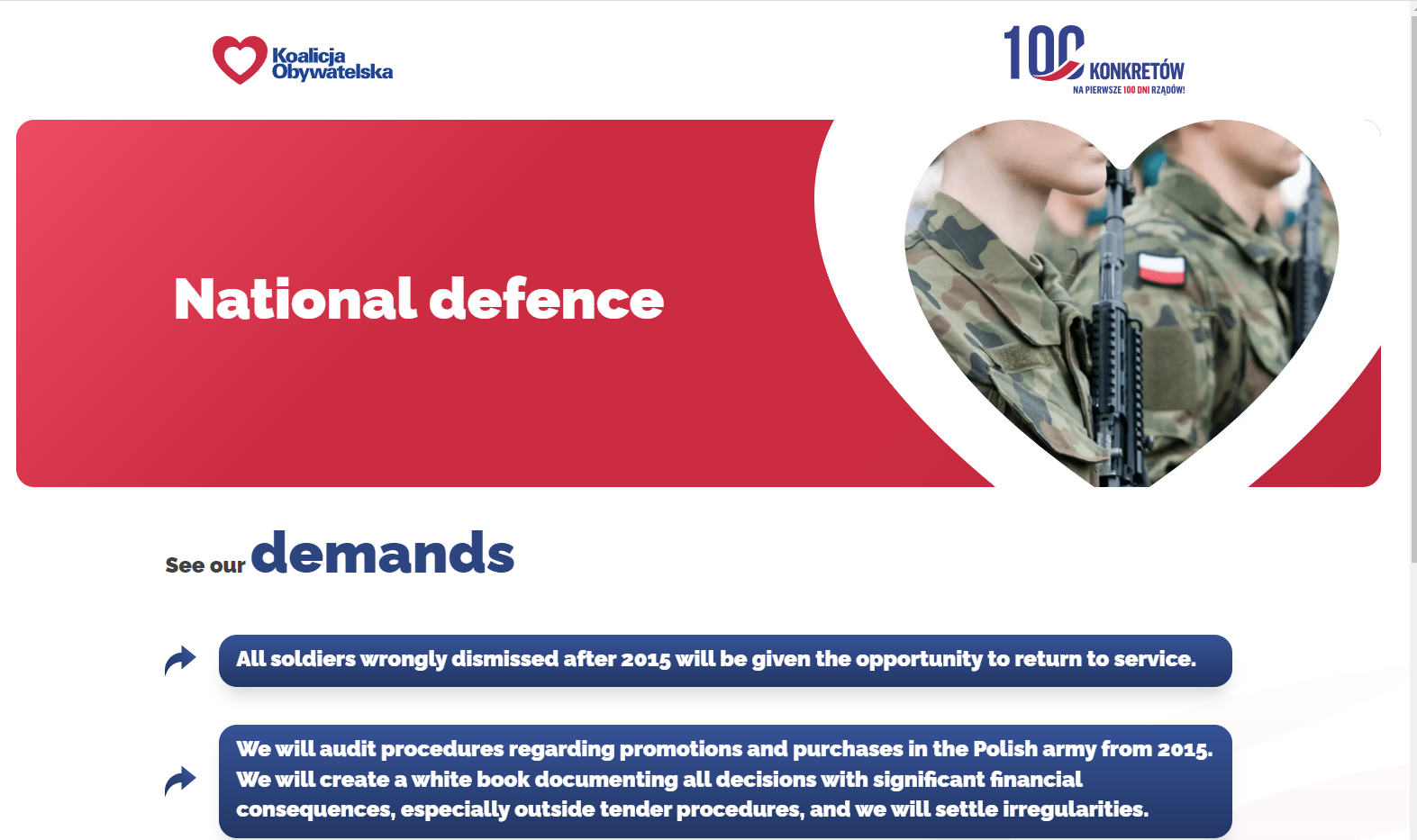 투스크 대표는 유럽연합(EU)이 지난해 6월 폴란드에 배정했지만, PiS정부의 사법개혁을 이유로 지불을 유예한 EU 코로나19 회복 기금(354억 유로)의 동결 해제를 추진하겠다고 다짐했다. 낙태법 개정도 공언했다. 239억 유로는 공여금으로, 115억 유로는 몇 년에 걸쳐 상환할 수 있는 저리 차관이다. 그러나 사법부의 독립성을 복원할 조처가 있기 전까지 지급을 유예키로 했다. 투스크는 총리(2007~2014)와 EU 상임위원회 의장을 지낸 친유럽주의자다.