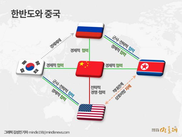 물론 중국의 한반도 침묵이 북러관계 때문은 아니다. 보다 중요한 이유는 '미국 변수'와 '한국 변수' 및 중국의 외교전략 때문이다. 양갑용 국가안보전략연구원은 <시민언론 민들레>에 "중국은 한반도 문제에서 결코 혼자 행동에 나서지 않는다”라면서 "한반도는 여전히 중요하지만, 글로벌 차원에서 미국과 접점을 찾는 게 더 유효한 것으로 보는 것 같다"고 말했다. ☞<계속>