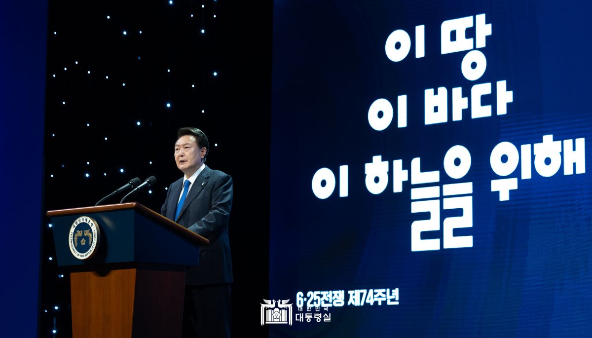대통령은 우리가 자유와 번영의 길을 달려올 때 북한은 퇴행의 길을 고집하며 지구상의 마지막 동토로 남아 있다면서 핵과 미사일 능력 고도화, 오물 풍선 살포와 같은 비열하고 비이성적인 도발, 유엔 안보리 결의를 정면으로 위반하는 러시아와의 「포괄적인 전략적 동반자 관계에 관한 조약」 체결 등 역사의 진보에 역행하는 시대착오적 책동을 하고 있다고 비판했습니다. 대통령은 북한의 도발과 위협에 맞서 대한민국의 자유민주주의와 우리 국민의 삶을 든든하게 지키겠다고 약속했습니다. 대통령은 70주년을 맞은 한미동맹과 자유의 가치를 함께하고 있는 국가들과의 연대를 통해 우리의 자유와 평화를 더욱 단단하게 지켜나가겠다고 밝혔습니다. 대통령은 평화는 말로 지키는 것이 아니라 강력한 힘과 철통같은 안보태세가 진정한 평화를 이룩하는 길이라면서 우리가 더 강해지고 하나로 똘똘 뭉치면 자유와 번영의 통일 대한민국도 결코 먼 미래만은 아닐 것이라고 강조했습니다. 대통령은 이러한 노력이 영웅들의 숭고한 희생과 헌신에 보답하는 길이라면서 정부는 6·25전쟁 참전용사들을 최고로 예우하고 보훈 문화가 우리 사회에 더욱 확산하도록 최선을 다하겠다고 약속했습니다.