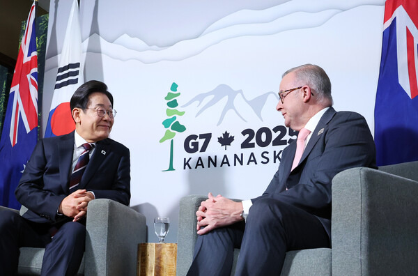 이 대통령은 이날 앤서니 앨버니지 호주 총리와도 정상회담을 가졌다. 두 정상은 오는 25일이 한국전쟁 75주년임을 화제로 호주의 파병 사실과 이후 양국 국민에게 이익이 된 협력관계에 관한 의견을 나눴다. 이 대통령은 "우리가 에너지와 자원 문제에서 호주에 의존하는 부분이 상당히 많다"고 말했다. 앨버니지 총리는 다가오는 경주 아태경제협력체(APEC) 정상회의 때 방한을 고대하고 있다"면서 이 대통령의 호주 방문을 제안했다. 한국과 방산협력을 하고 있는 호주는 트럼프가 최근 오커스(호주-영국-미국) 핵잠수함 협력 사업의 재검토를 발표하면서 안보상의 불확실성이 높아졌다.