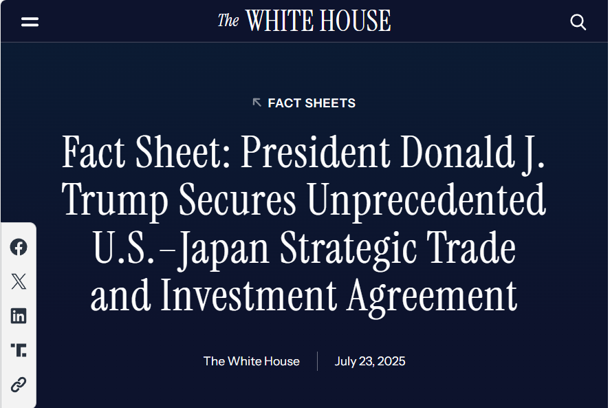 A HISTORIC TRADE AND INVESTMENT AGREEMENT WITH JAPAN:Yesterday, President Donald J. Trump announced a landmark economic agreement with Japan—one of America’s closest allies and most important trading partners.
