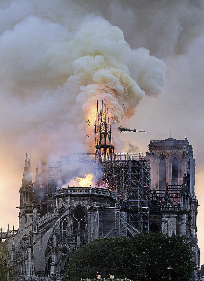 15일 저녁 6시50분쯤 파리 노트르담 대성당에서 화재가 발생했다. 다행히 4개의 첨탑 중에서 전면의 2개는 화마를 피했다. 하지만 나머지 2개의 첨탑과 지붕이 내려앉았다. 화재가 진화된 뒤 공개된 성당 내부는 그나마 원형을 유지하고 있었다.